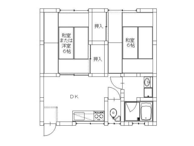 | 詳細間取 | 2K (和6帖×2、キッチン6帖) | ||