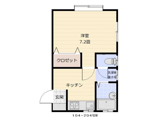 | 詳細間取 | 1K (洋7.2帖×1) | ||