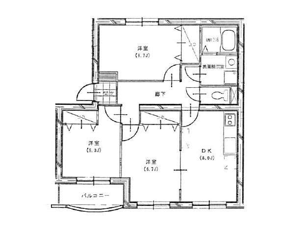 | 詳細間取 | 3DK (洋5.2帖×1、洋6.7帖×1、洋6.7帖×1、DK8帖) | ||